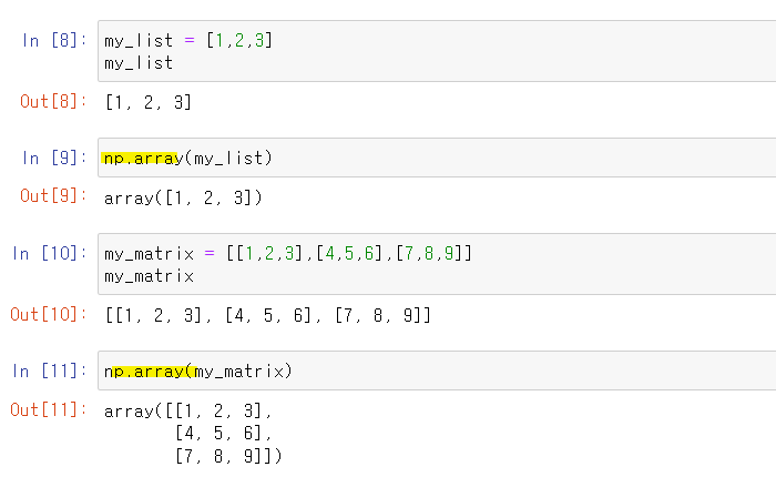 - While NumPy structures look similar to standard Python lists, they are much more efficient