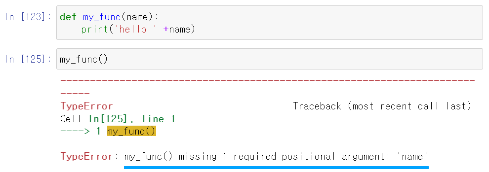 - function을 실행시킬 때, ()안에 argument를 넣지 않으면 error가 발생함
