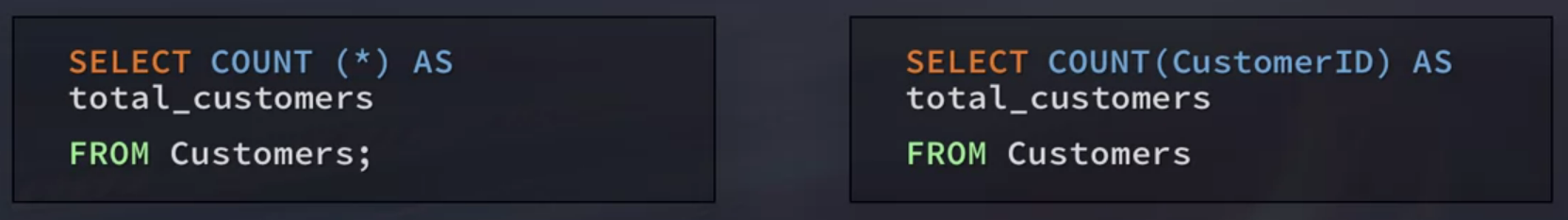 COUNT(column) - Counts all the rows in a specific column ignoring NULL values