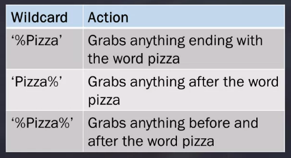 a. You must take into account that there are different ways to use wildcards in different database management systems. So that requires learning what works according to the database management system you are using.