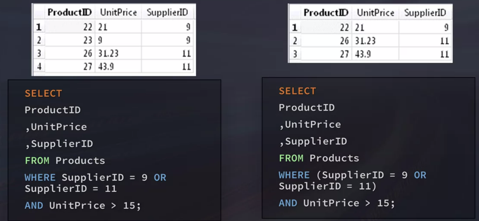 SQL processes AND before OR