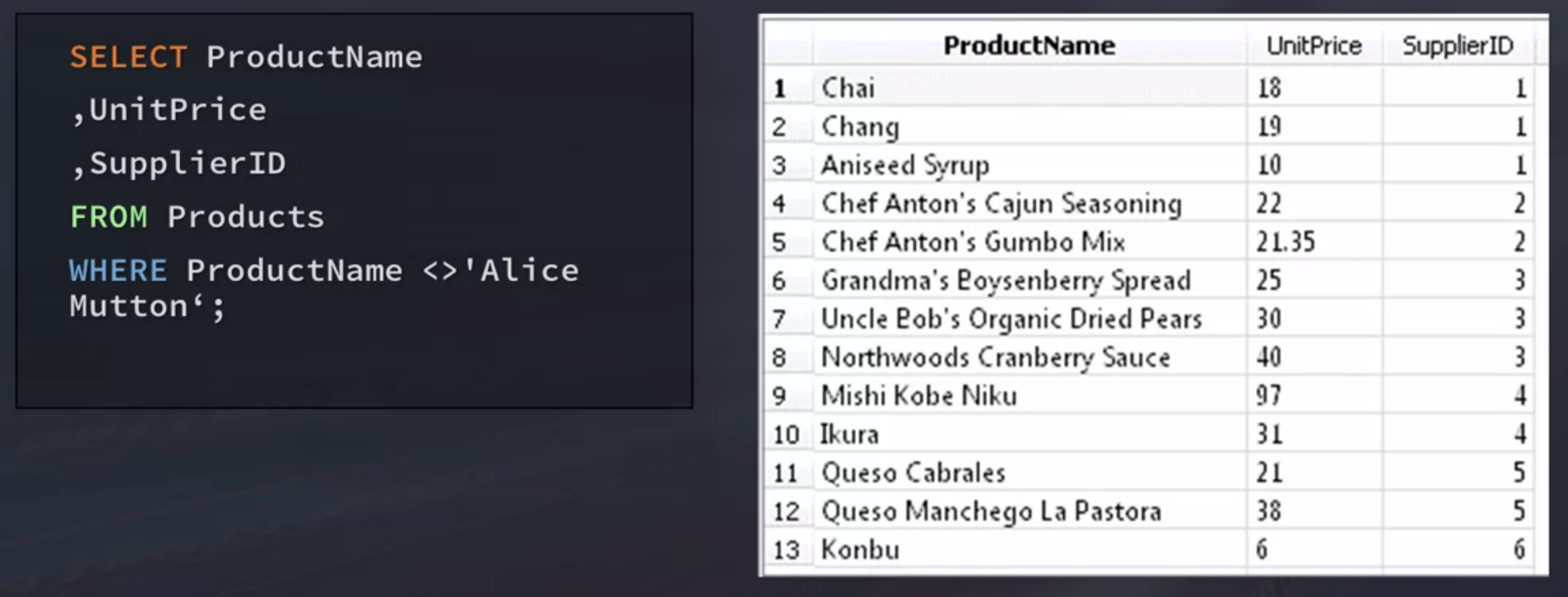WHERE Clause Operators